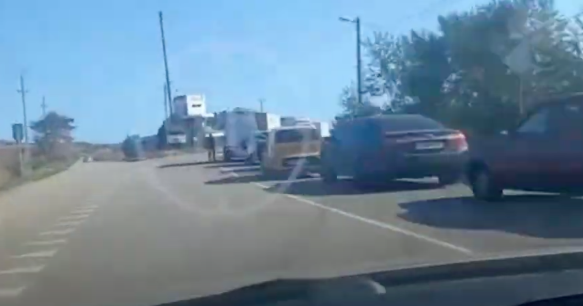 У Криму утворились величезні черги на поромну переправу після вибуху на мосту (відео)