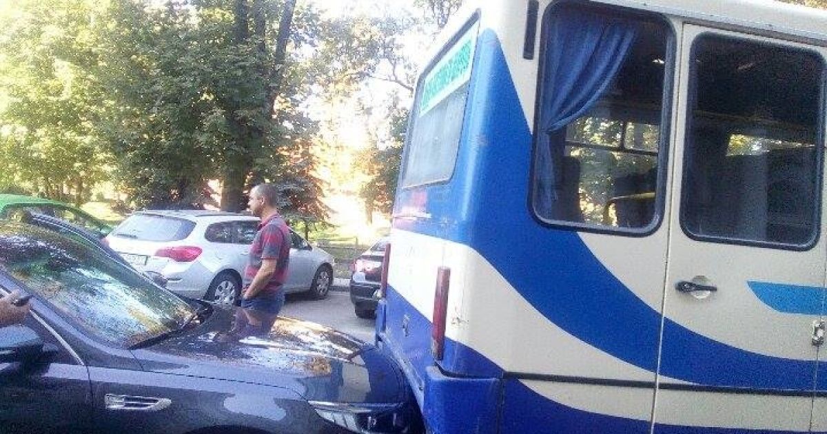 Згідно із повідомленням, автобус рухався заднім ходом, аж раптом зіткнувся з автомобілем KIA Optima, який возить голову Львівської облради Олександра Ганущина.