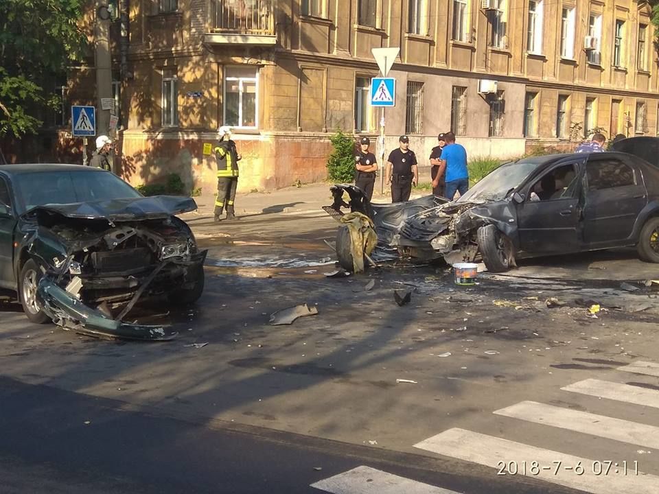Як зазначається, ДТП сталася близько 7 години ранку, не змогли розминутися на перехресті Dacia Logan та Skoda Octavia. Після зіткнення перше авто спалахнуло і вигоріло вщент.