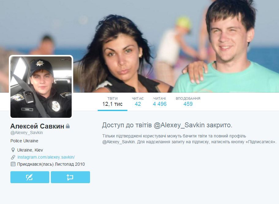 Наразі доступ до твітів Савкіна обмежений, однак юзери публікують скріншоти із повідомленнями патрульного.