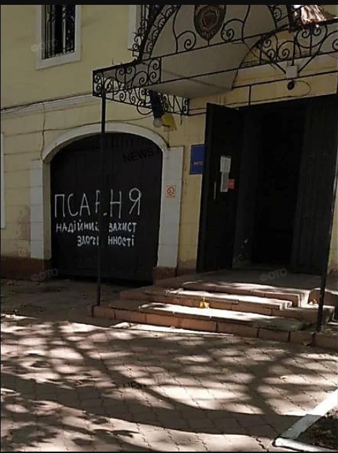 У Миколаєві чоловік, який на воротах поліції написав "псарня", у суді заявив, що це були роботи з благоустрою