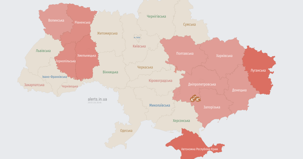 У ніч проти 29 січня на сході країни була оголошена повітряна тривога через застосування ворогом балістичного озброєння.