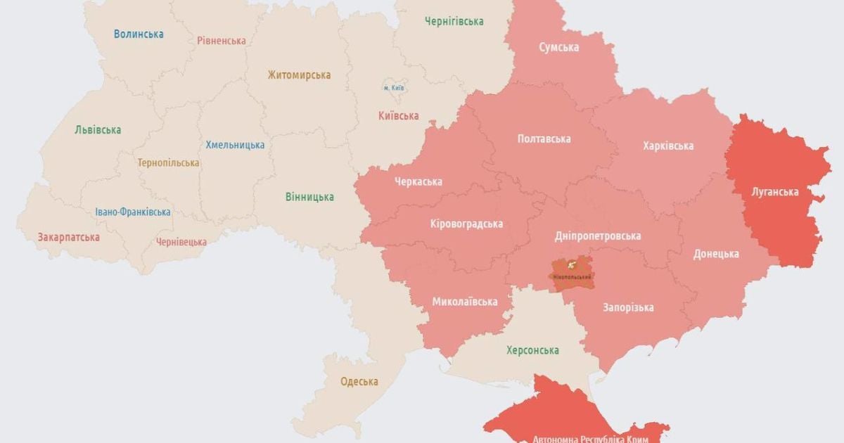 Зараз повітряні тривоги оголошені в Запорізькій, Черкаській, Дніпропетровській, Полтавській, Кіровоградській, Миколаївській, Харківській та Сумській областях.