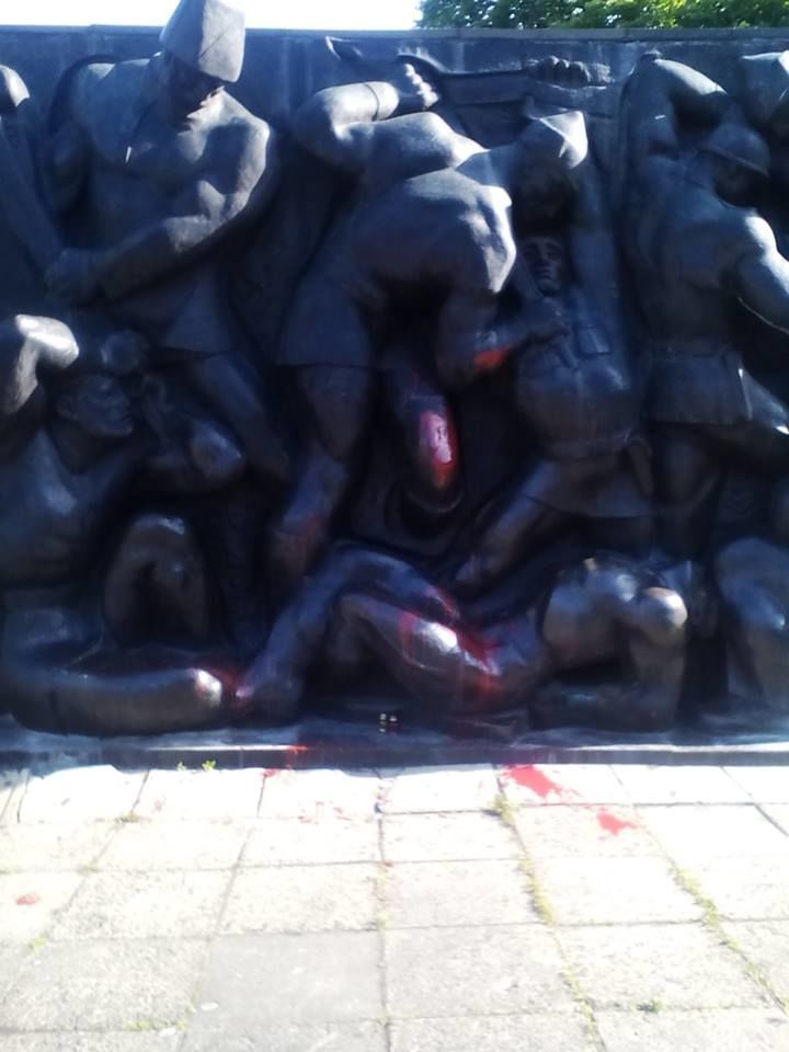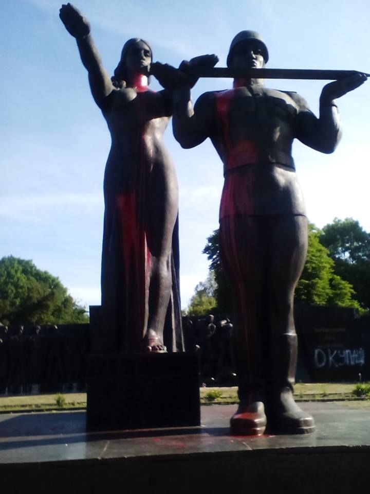 Раніше повідомлялося, що у Львові на вулиці Стрийській невідомі спаплюжили Монумент Слави. Зловмисники облили червоною фарбою фронтальні фігури воїна та "Батьківщини-Матері", а також горельєфи на стелі.