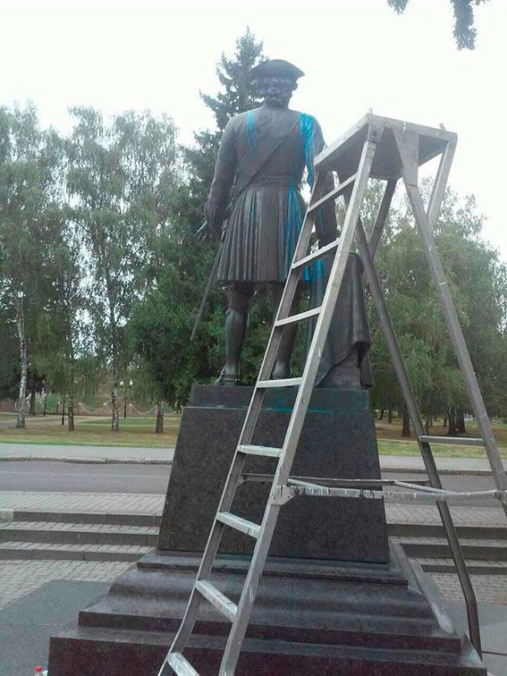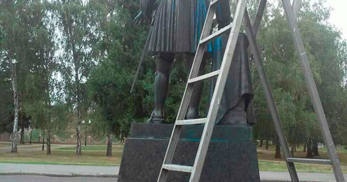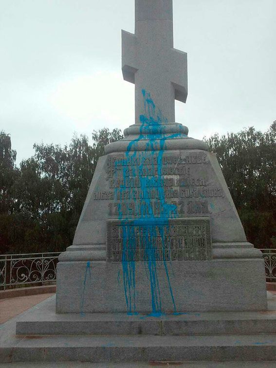 У ніч проти 29 серпня невідомі облили синьою фарбою пам'ятник царю Петру І, а також хрест на могилі російських воїнів, що загинули під час знаменитої битви 1709 року.