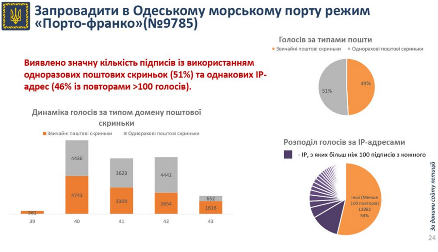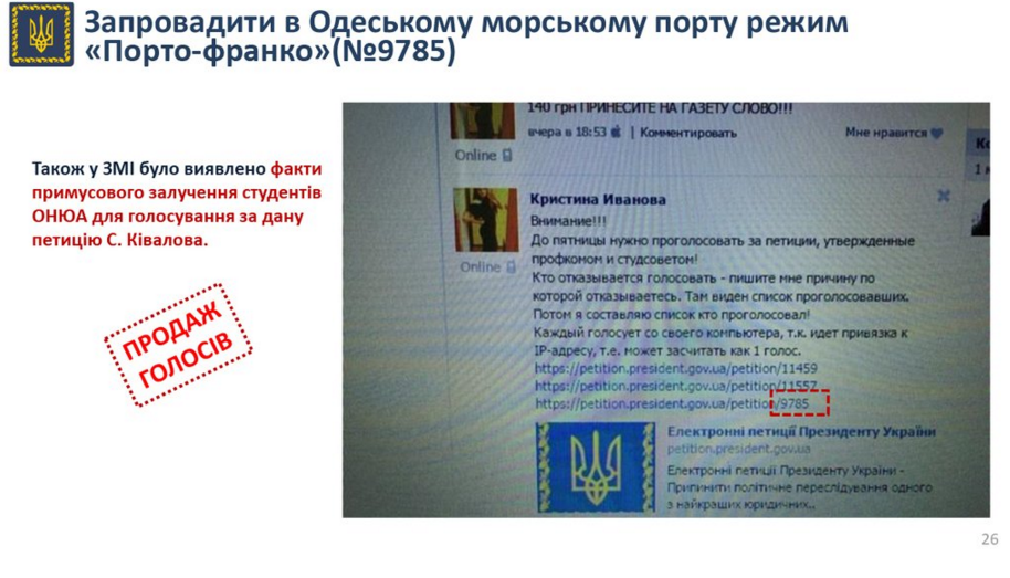 Зокрема, ці порушення виявили у петиції щодо Одеського порту С.Ківалова.