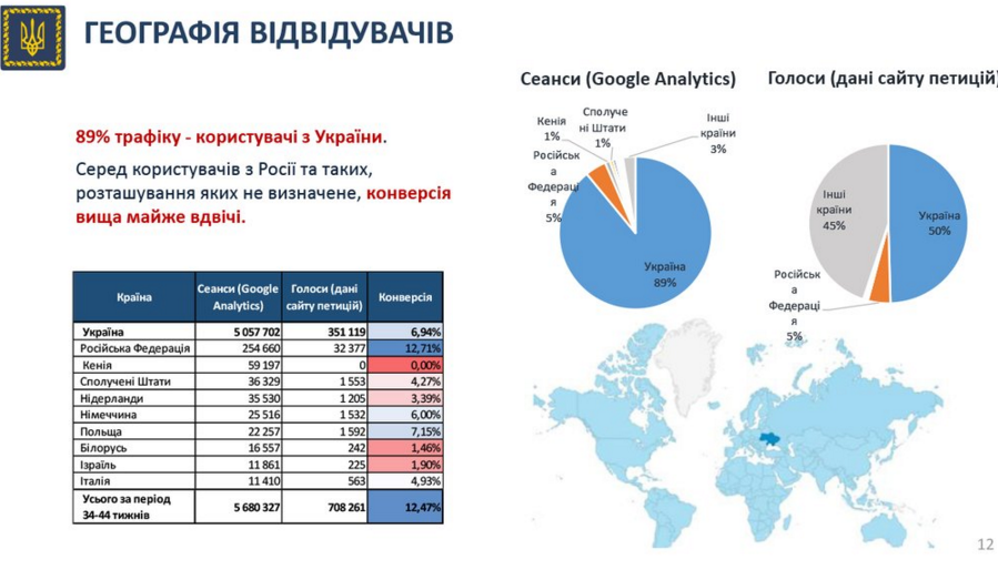 89% трафіку сайту петицій – користувачі з України, 5% – з РФ, 1% – Кенії, – Д.Шимків pic.twitter.com/3seDRgkONN