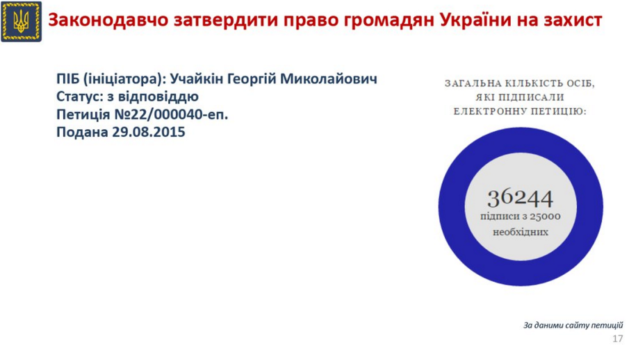 У Facebook найпопулярнішою виявилася петиція про "законодавче затвердження права громадян України на захист".