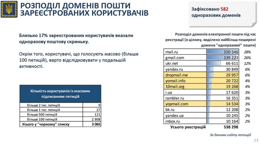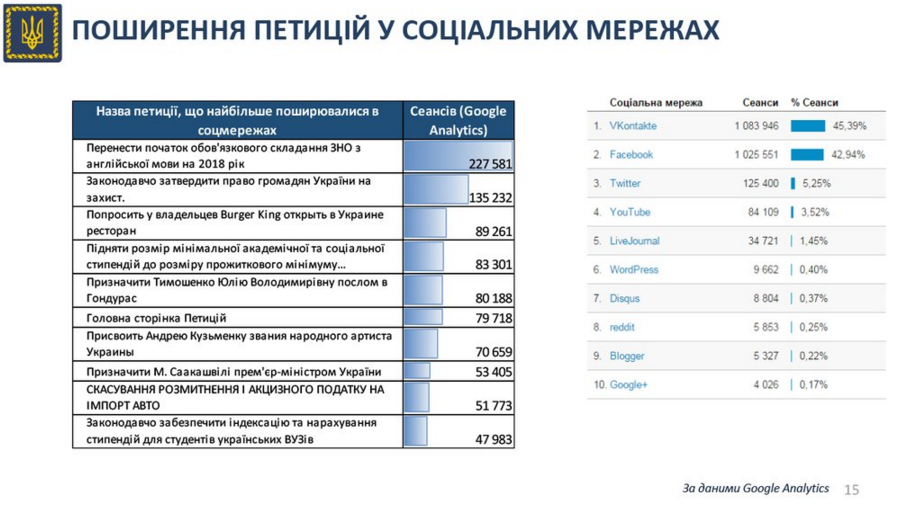 Окрім того, популярність петицій вираховували й у соцмережах.