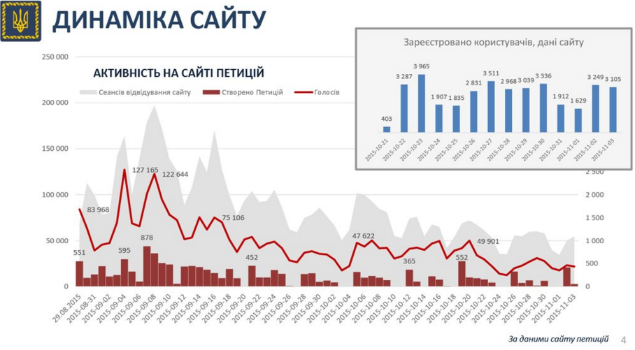 Максимальна кількість самих петицій була створена на початку вересня. Тоді ж спостерігалася й висока активність юзерів на сайті.