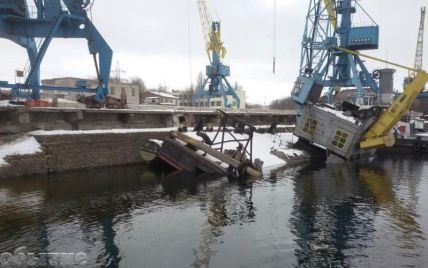 300 тонн мазуту вилилось у річку Дніпро в Кам'янському на Дніпропетровщині. У місцевому річному порту йде під воду баржа з краном.