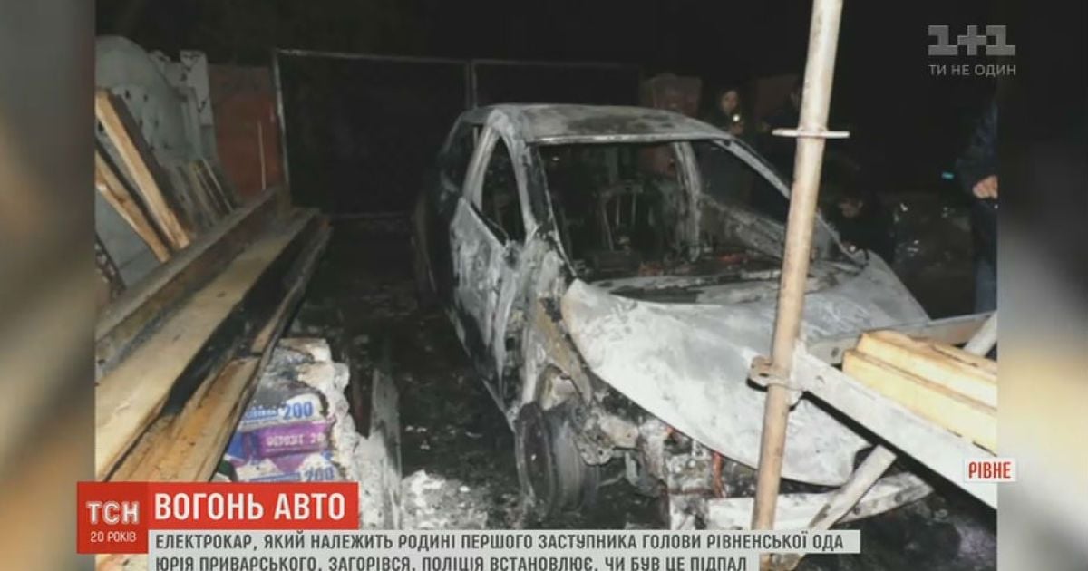 Пожежників викликали сусіди. За їхніми словами електромобіль вибухав. Нині на місці працюють правоохоронці. З'ясовують був це підпал чи несправності електрообладнання. Вартість машини за попередньою інформацією 25 тисяч доларів. Відновленню вона не підлягає. Сам Юрій Приварський наразі подію не коментує.