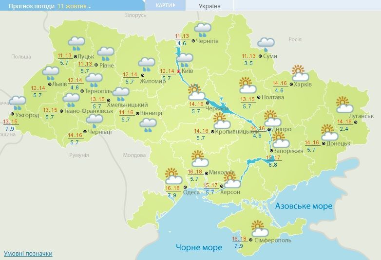 Прогноз погоди в Україні на 11 жовтня 2017 року / © Укргідрометцентр