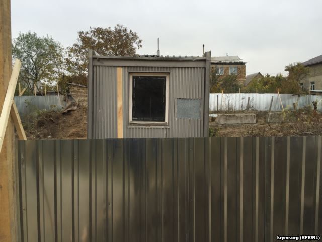 Паркан і вагончик будівельників на захопленій ділянці / © Крим.Реалії