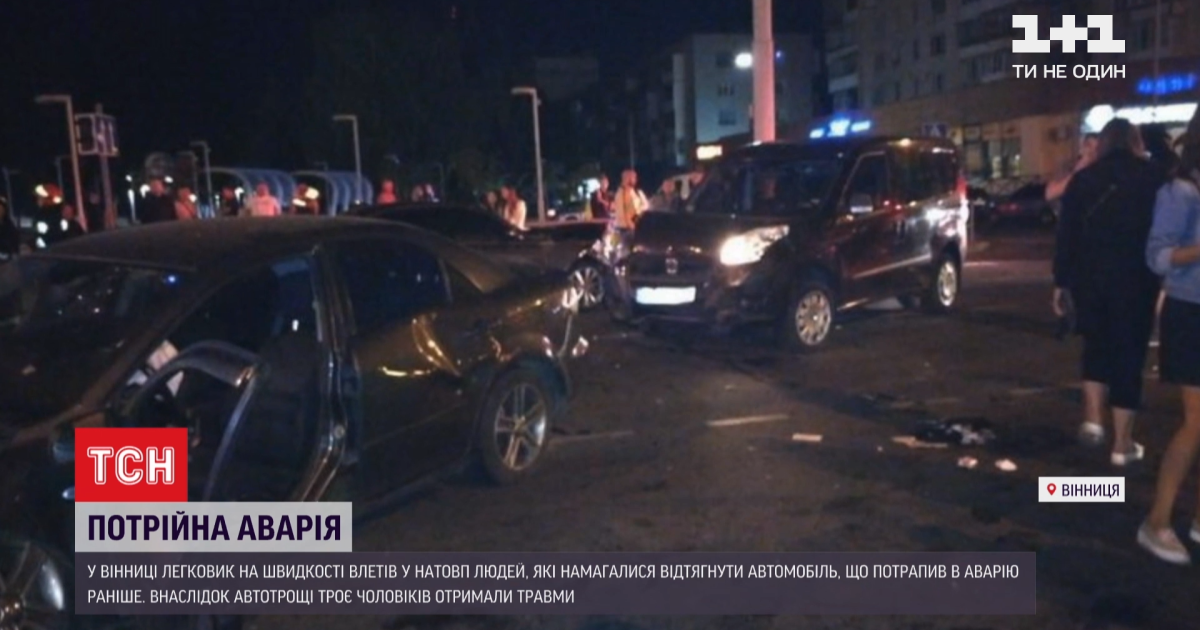 Потрійна ДТП сталася у Вінниці: автомобіль налетів на натовп людей.