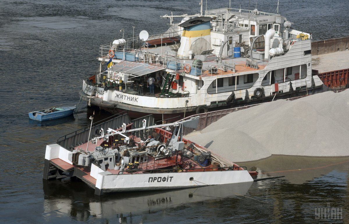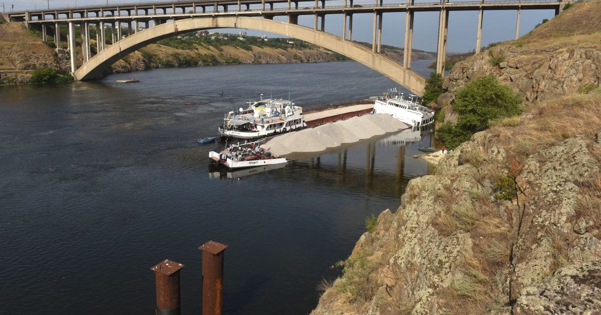 У Запоріжжі біля острова Хортиця другу добу тоне вантажне судно з щебенем