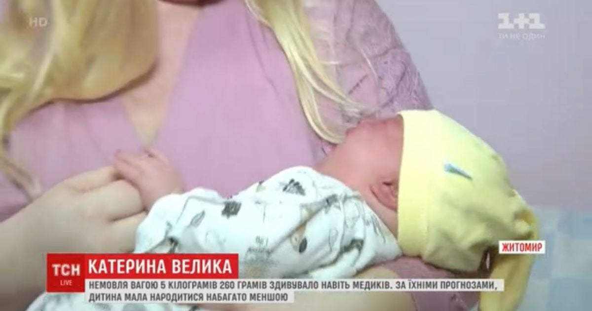 У Житомирі народилася дівчинка вагою 5 кілограмів 260 грамів. Зріст немовляти 60 сантиметрів. У 38-мирічної породіллі це вже треті пологи, але попередні діти народжувались майже вдвічі меншими, йдеться у сюжеті ТСН.19:30.