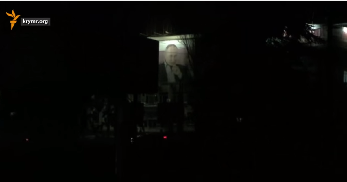 У знеструмленому Криму, який лишився без світла, продовжують підсвічувати зовнішню рекламу із президентом РФ Володимиром Путиним.