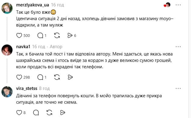 Також користувачі зазначили, що через різні дописи зі скаргами, ймовірно, до України звезли підробну партію популярних телефонів.
