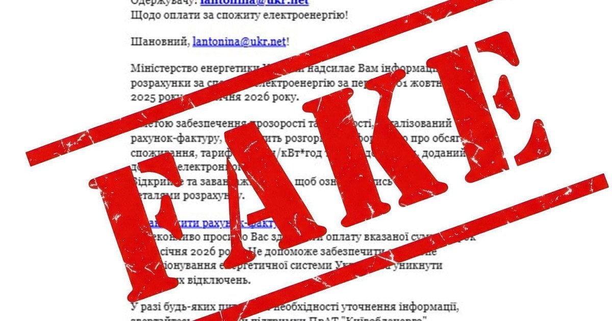 Українців попереджають про нову фішингову розсилку електронних листів від імені Міністерства енергетики України. Це — фейк.