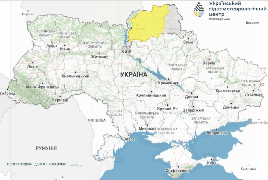 У цих регіонах оголошено перший рівень небезпечності, жовтий.
