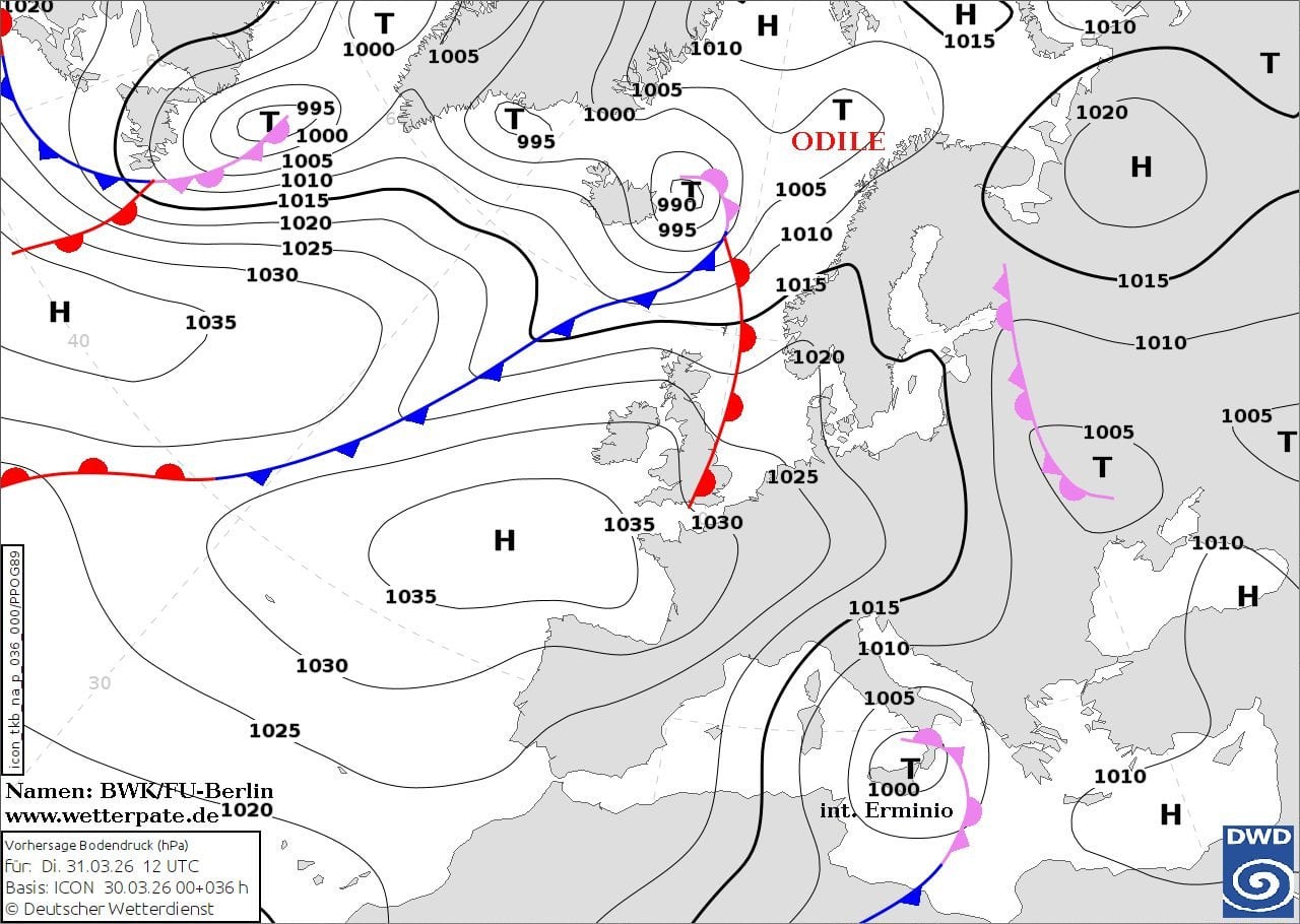 Над Італією у вівторок, 31 березня, — циклон і над Україною — циклон.