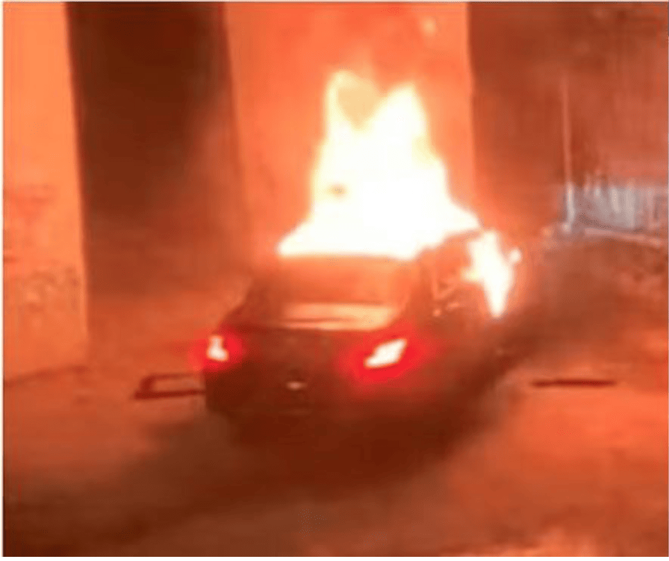Охоплений вогнем Mercedes, у якому потім знайшли тіло українця / © Фото з відкритих джерел