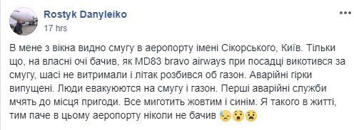 "Я такого в житті, тим паче в цьому аеропорту ніколи не бачив", - написав очевидець події Ростислав Данилейко у Facebook-групі "Авіація України".