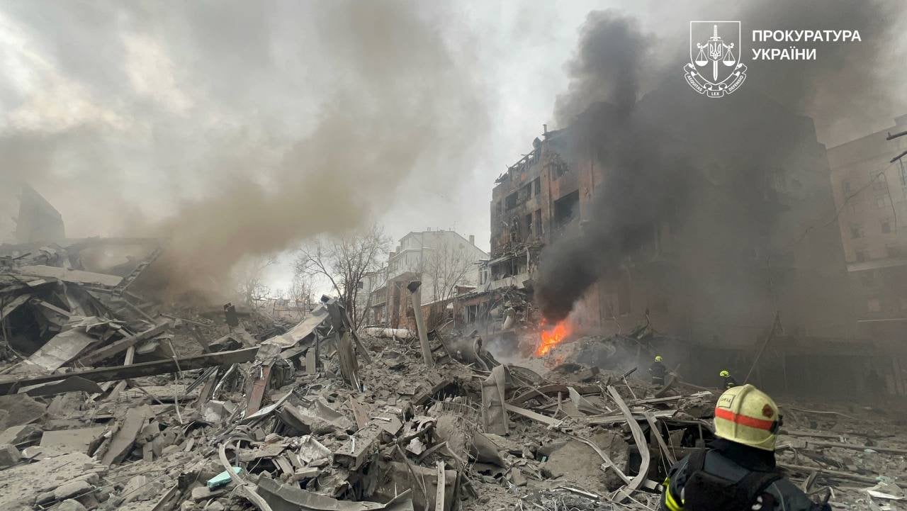 Російський «Іскандер» вщент зруйнував торговельно-офісну будівлю та обвалив під’їзд житлової чотириповерхівки. Рятувальна операція триває.