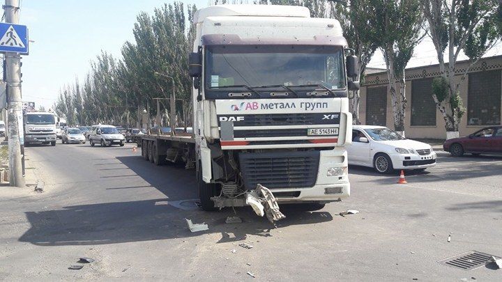 "Рухаючись Миколаївською дорогою, водій вантажного автомобіля з напівпричепом, виконуючи поворот праворуч із середньої смуги руху, не переконався, що це буде безпечно і допустив зіткнення з автомобілем Renault Trafic, який рухався в крайній правій смузі", - розповіли правоохоронці.