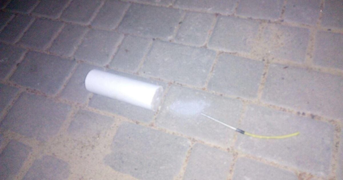 Прибулі на місце поліцейські помітили двох чоловіків, у яких виявили предмет схожий на саморобний вибуховий предмет циліндричної форми, де з одного боку був присутній шнур для запалу.