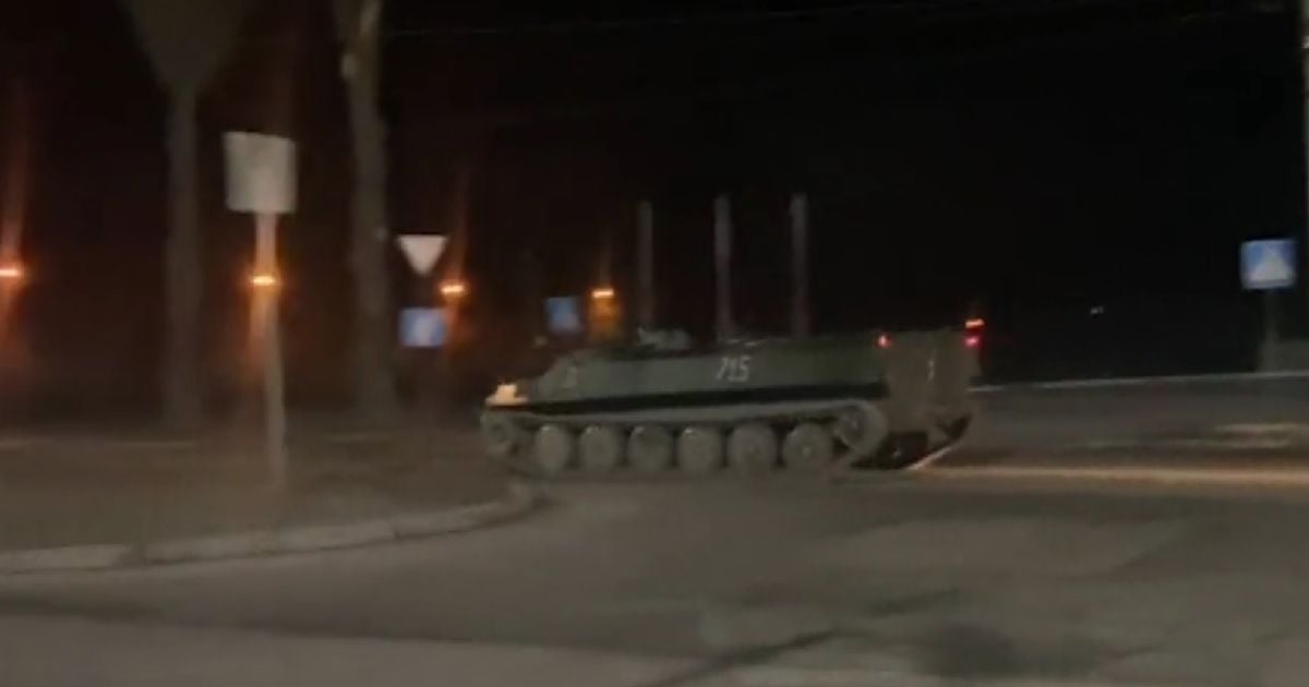 У Донецьку після того, як Путін визнав псевдореспубліки - так звані "ЛНР" та "ДНР" побачили щонайменше 7 танків без розпізнавальних знаків.