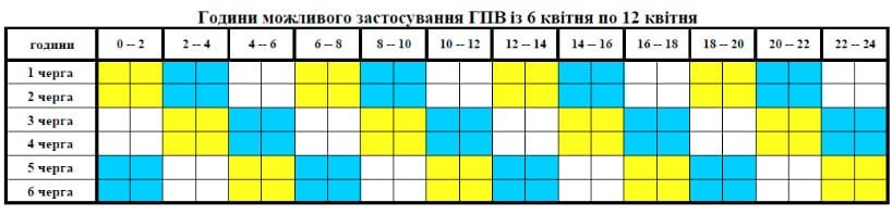 Завтра, 9 квітня, в усіх регіонах України, в тому числі на Прикарпатті, будуть застосовуватися графіки погодинних відключень з 07:00 до 22:00.