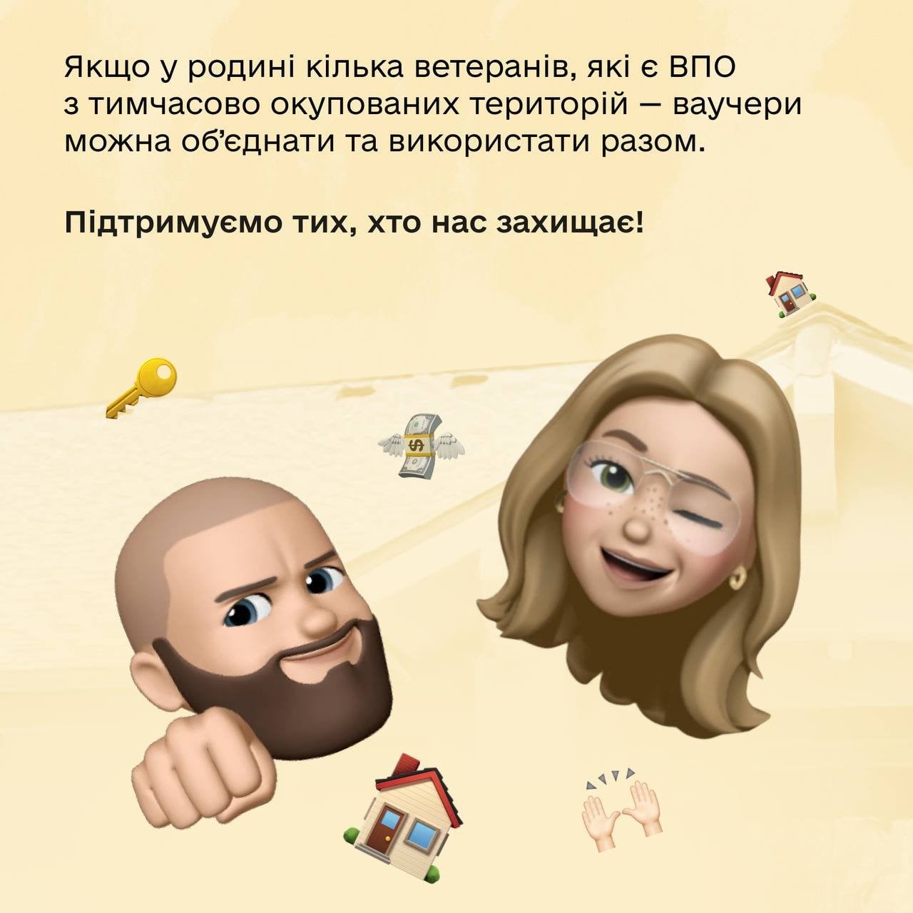 Якщо в одній родині кілька ветеранів-ВПО з ТОТ, їхні ваучери можна об’єднати та використати разом.