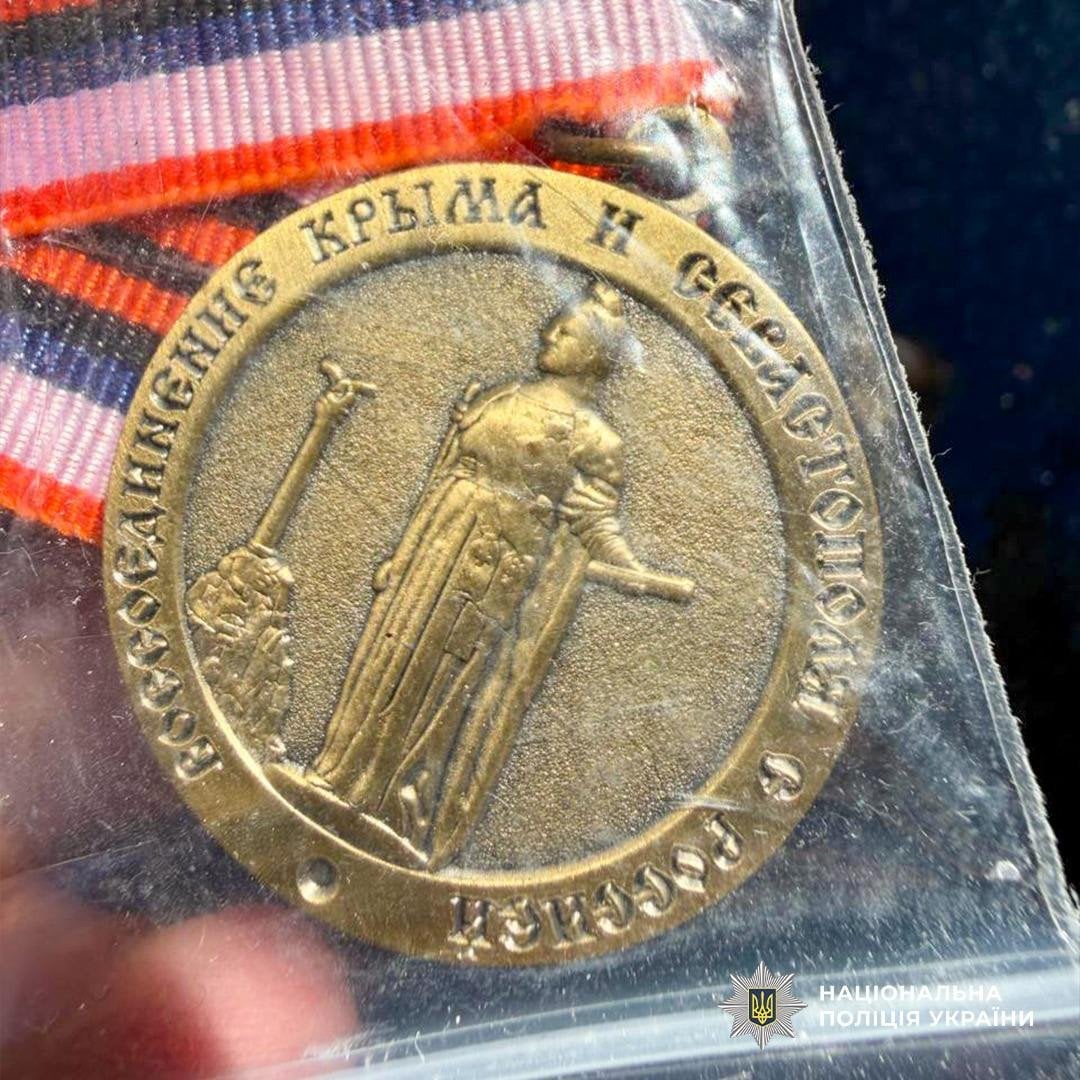 Також в одного з фігурантів правоохоронці виявили медалі та коїни з надписами «Год основанія 1147 москва», «воссоєдінєніе Крима і Севастополя с россієй», а також сухпаї армії РФ. Наразі перевіряється причетність фігурантів до російської армії та їхній стосунок до країни-агресора.
