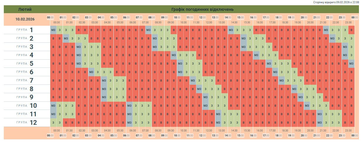 За командою НЕК «Укренерго», 10 лютого діятиме графік погодинних відключень (ГПВ):