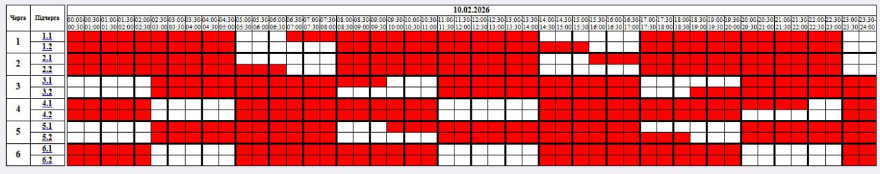 У вівторок, 10 лютого, застосують наступні графіки відключення: