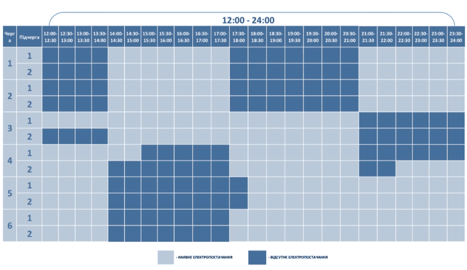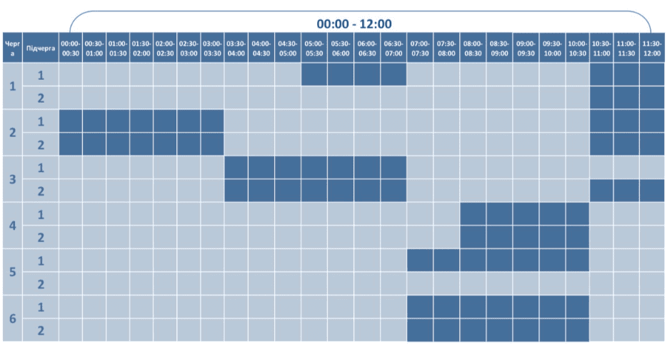 Графік відключення світла у Дніпропетровській області