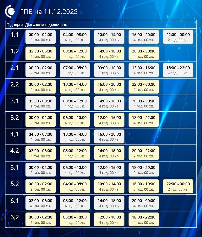 Черга 4.2: 00-02, 04-06, 08-10, 12-14, 16-18, 20-22
