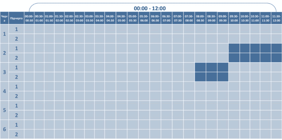 Черга 2.1: 02-04, 06-08, 10-12, 14-16, 18-20, 22-24