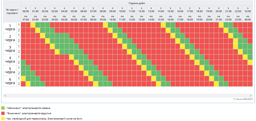 Черга 6.1: 2:00-4:00, 7:00-11:00, 15:00-19:00, 23:00-24:00