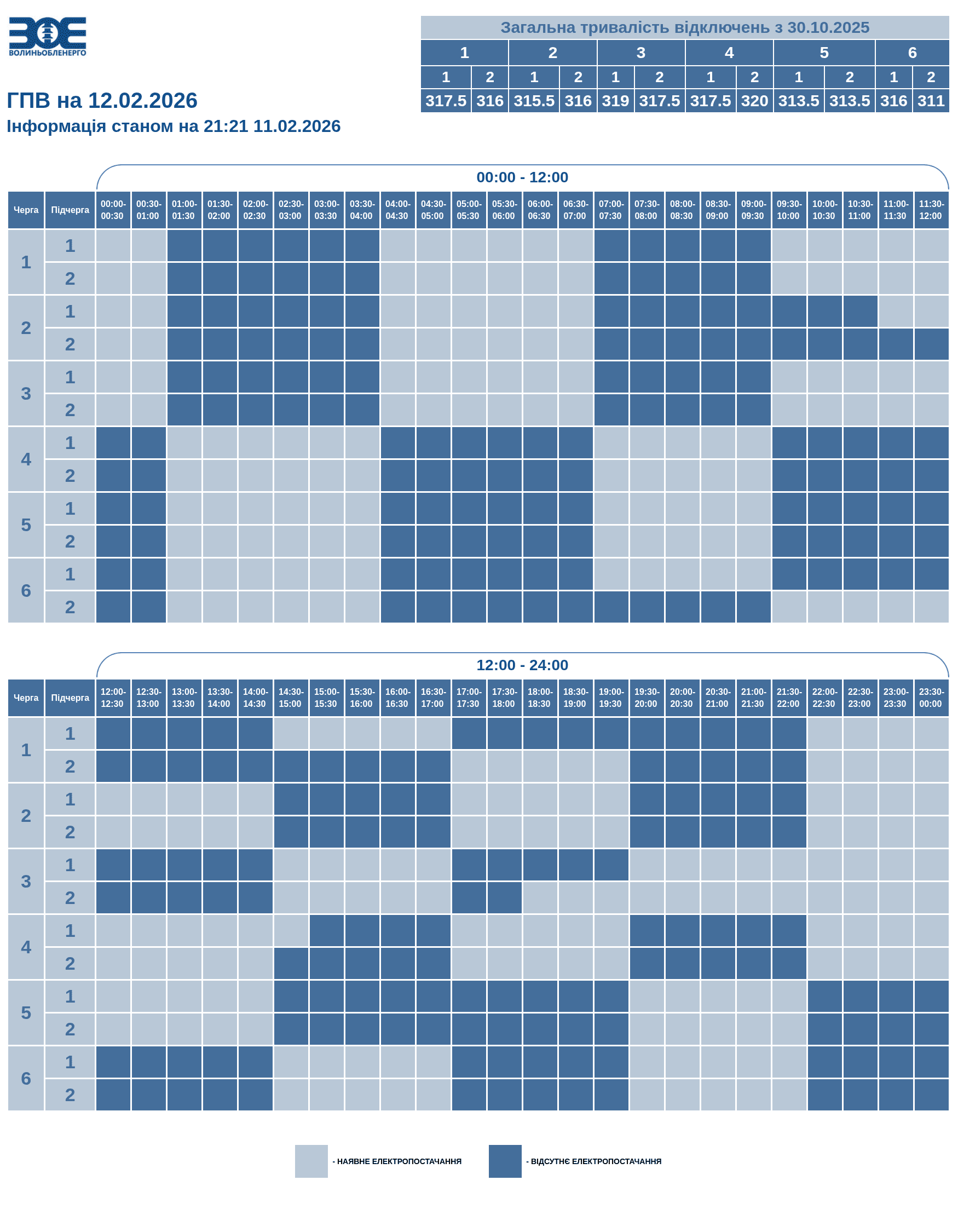 ДТЕК анонсував графіки погодинних відключень світла на четвер, 12 лютого, для столиці та всіх регіонів України.