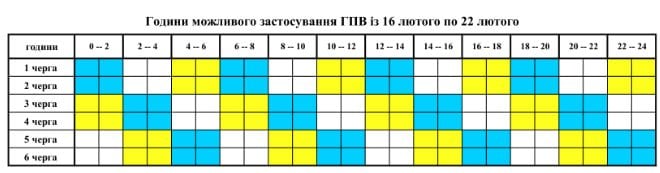 Графік погодинних включень/відключень електроенергії на 17 лютого: