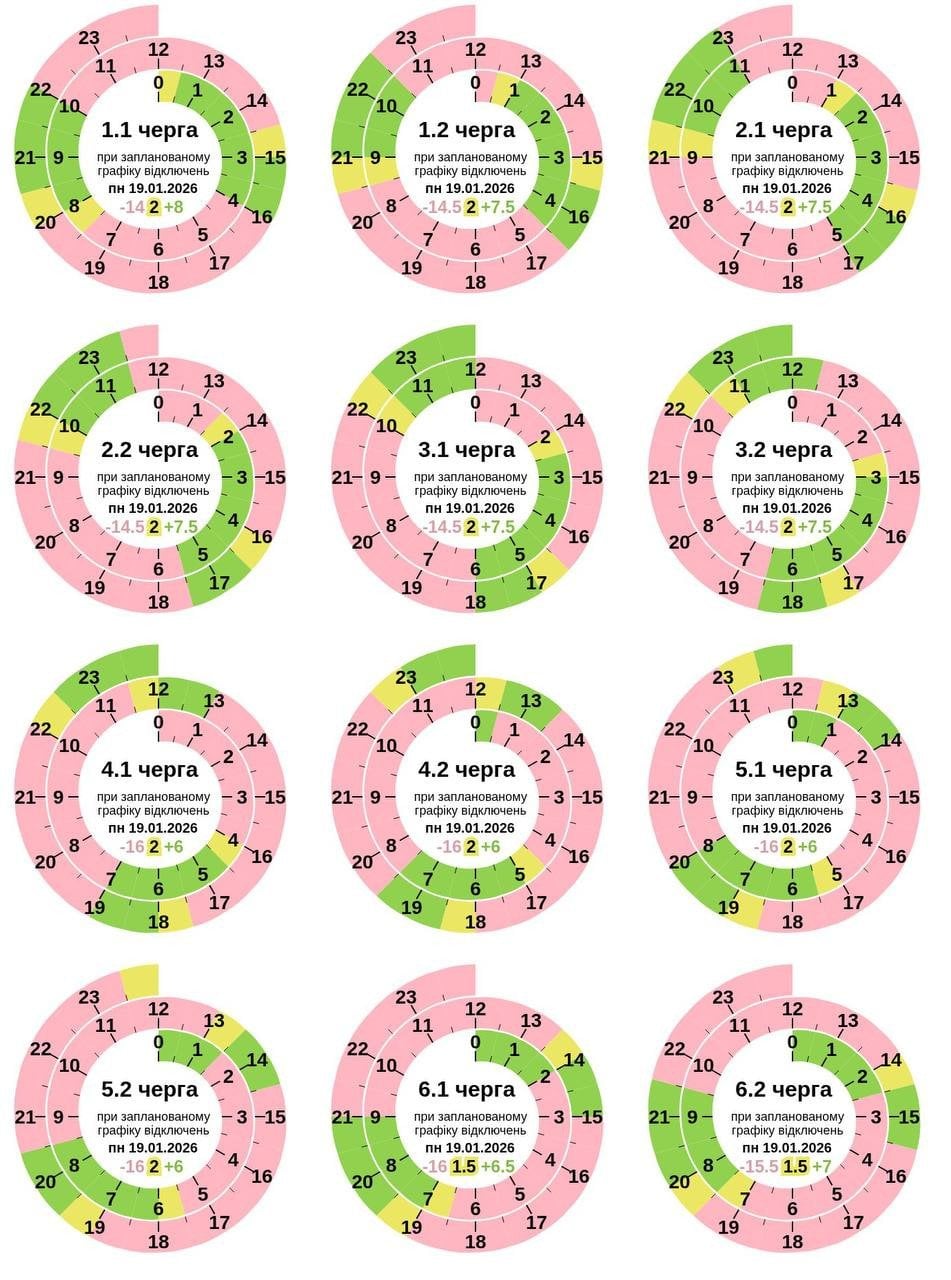 ДТЕК анонсував графіки погодинних відключень світла на неділю, 19 січня, для столиці та всіх регіонів України.
