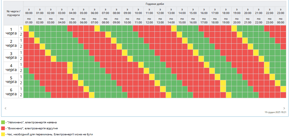ДТЕК анонсував графіки погодинних відключень світла на суботу, 20 грудня, для столиці та всіх регіонів України.