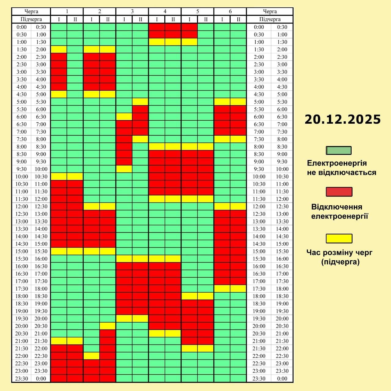 Відключення світла 20 грудня: актуальні графіки для всіх областей