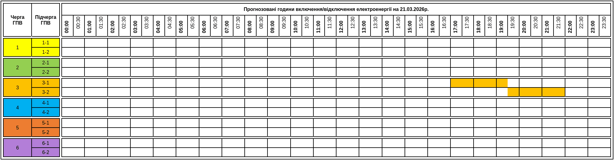 Графік відключення світла на Прикарпатті 21 березня