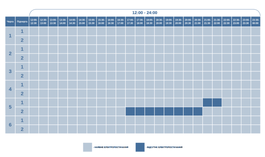 Графік відключення світла на Кіровоградщині 21 березня
