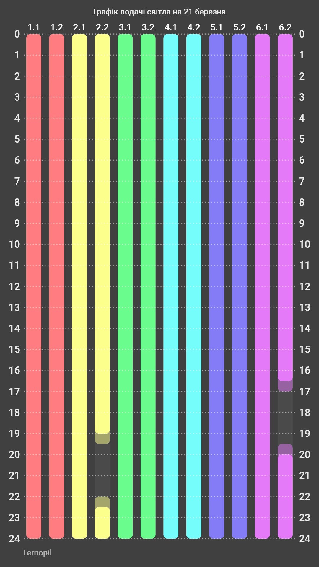 Графік відключення світла на Тернопільщині 21 березня