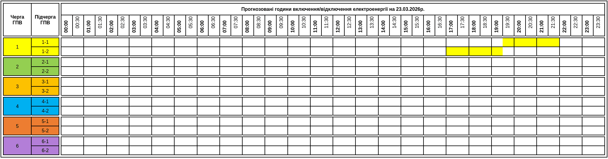 Графік відключення світла на Прикарпатті 23 березня